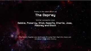 After this long struggle, the victory screen appears. It has the name of your ship as well as the names of every crew member that survived the encounter (excluding those who were on board the Flagship when it was destroyed in the final phase if you do not have a Clone Bay). If your ship is destroyed at the same time you destroy the Flagship, it will count as Victory as well.